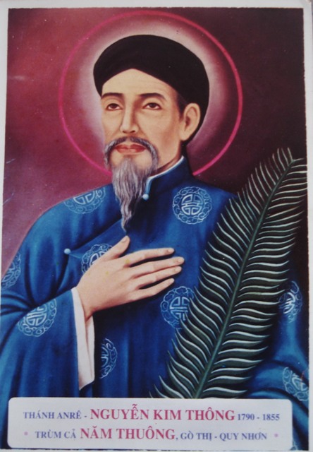 Anrê Nguyễn Kim THÔNG (Năm Thuông), sinh năm 1790 tại Gò Thị, Bình Ðịnh, Thầy Giảng, chết rũ tù ngày 15-7-1855 tại Mỹ Tho dưới đời vua Tự Ðức, phong Chân Phúc ngày 11-4-1909 do Ðức Piô X, kính ngày ... Đã đọc: 554 |